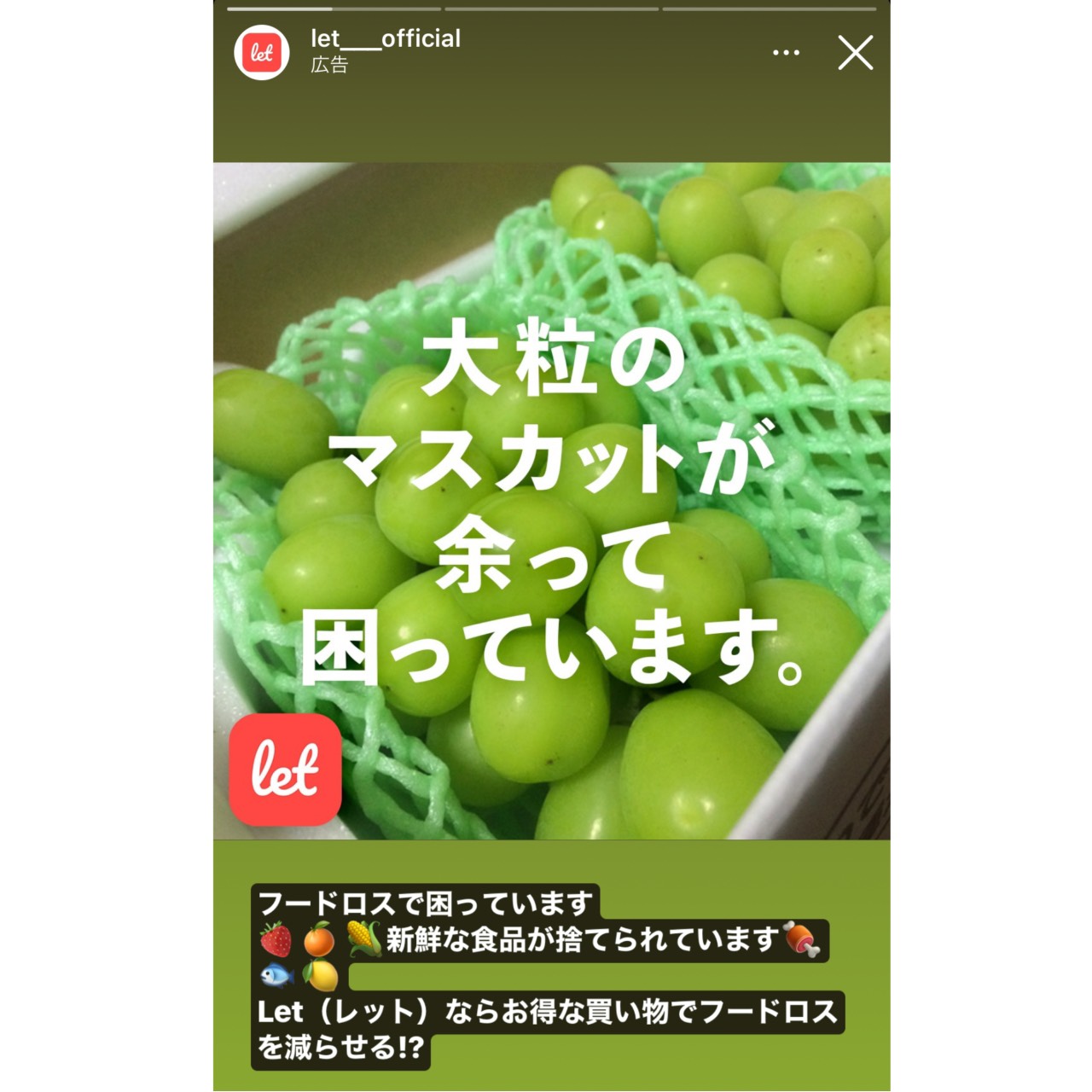 これは食品ロス削減マーケット「let」の広告です。ど直球な広告ですが、わかりやすいですよね。